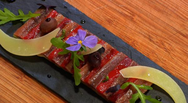 Galette d'anchois à l'huile d'olive, poivron rouge et aubergine