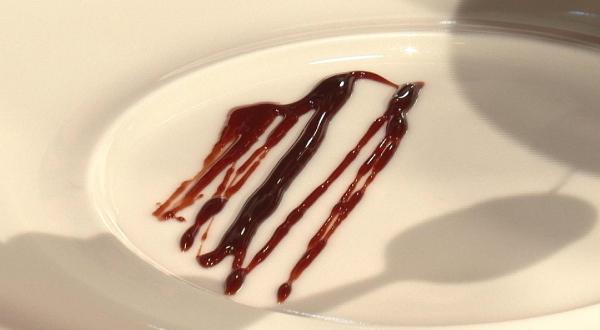 A l'aide d'une cuillère, dessiner des traits de Porto dans le fond de l'assiette de dressage.