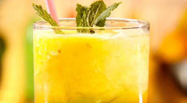 Verser très doucement le jus d'ananas sur un côté du verre.