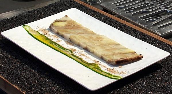 Arroser d'un filet d'huile d'amande, d'un peu de poudre de noisette et de vinaigrette. terminer avec quelques grains de sel Maldon.