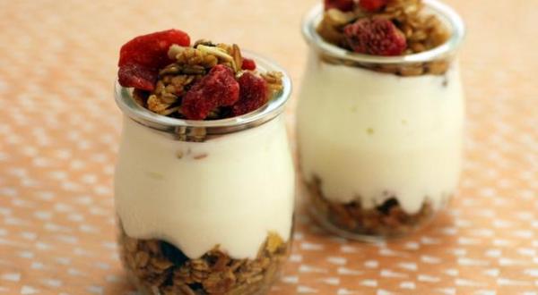 Mélanger le muesli restant avec les canneberges. Répartir ce mélange sur les yaourts au moment de servir. Il vaut mieux éviter de dépasser une semaine pour consommer ces yaourts faits maison.