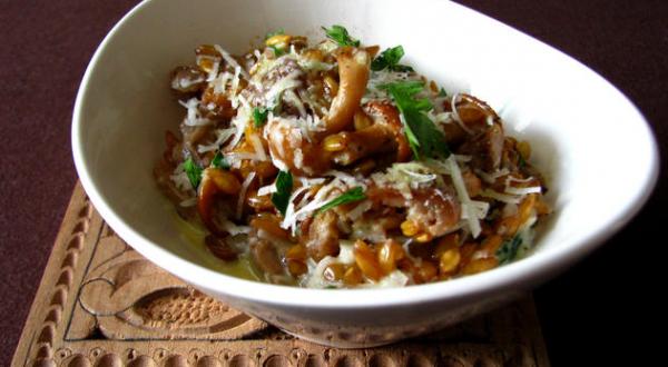 Ajouter les champignons au risotto d'épeautre. Mélanger et vérifier l'assaisonnement.