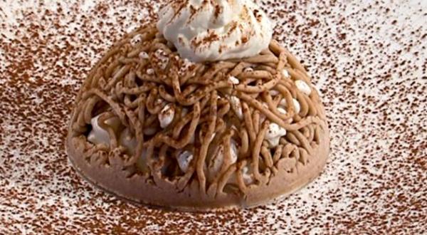 Pour former les vermicelles de marron, utiliser une seringue, une poche à douille avec un tout petit trou ou un moulin à légume.