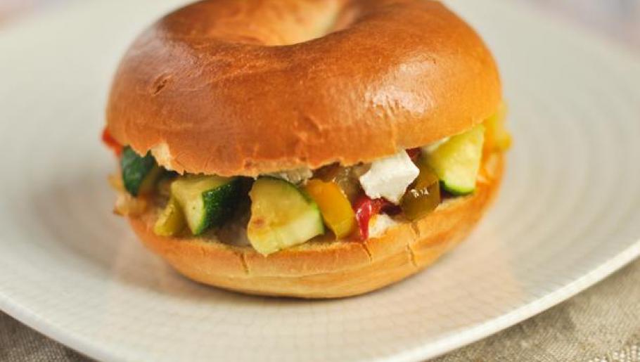 Pendant que la garniture aux légumes cuit, faire chauffer les bagels au four ou dans un toaster.