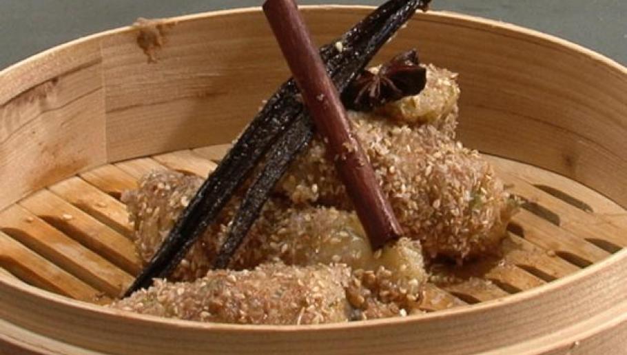Bananes à la vapeur de saké, aux épices et à la noix de coco