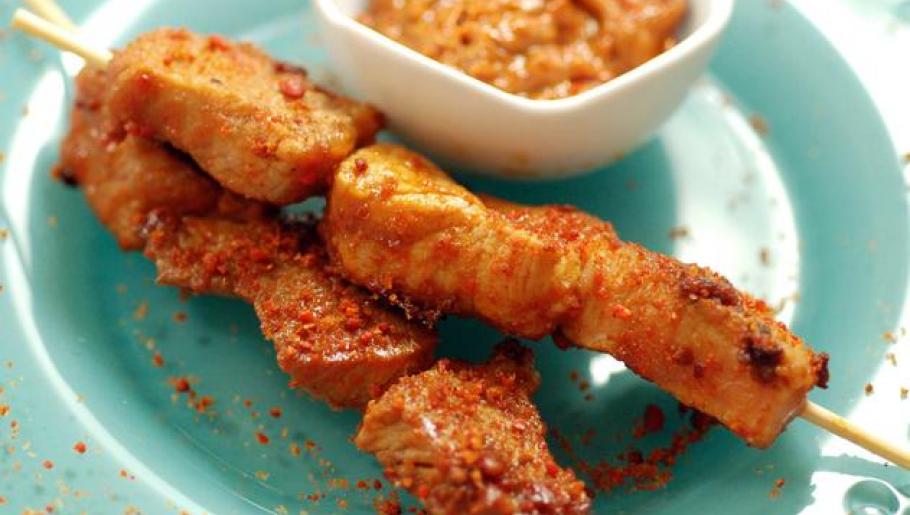 Dans un plat creux, délayer le yaourt avec la poudre de saté et le jus de citron.