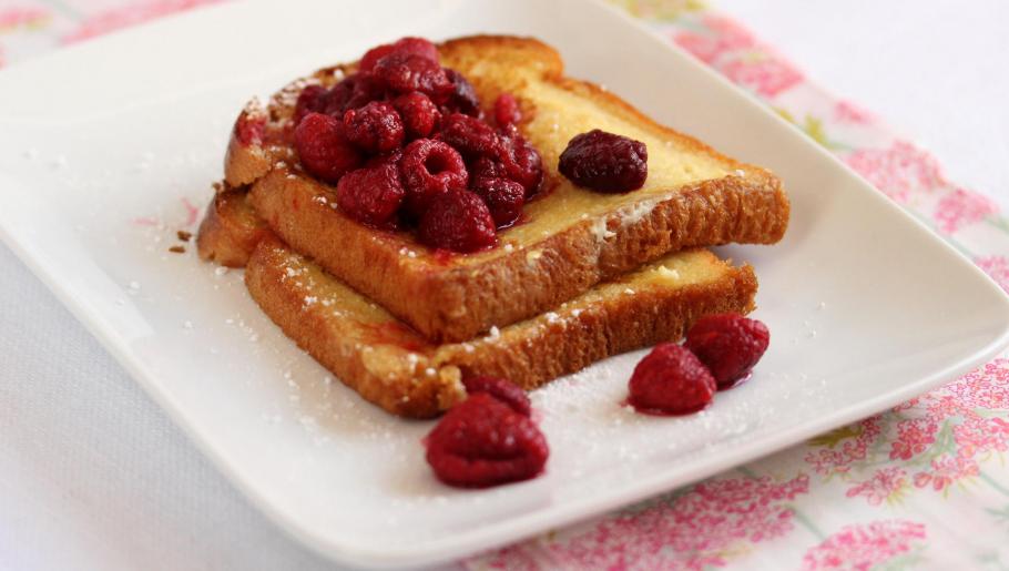 Pain perdu à la rose et aux framboises