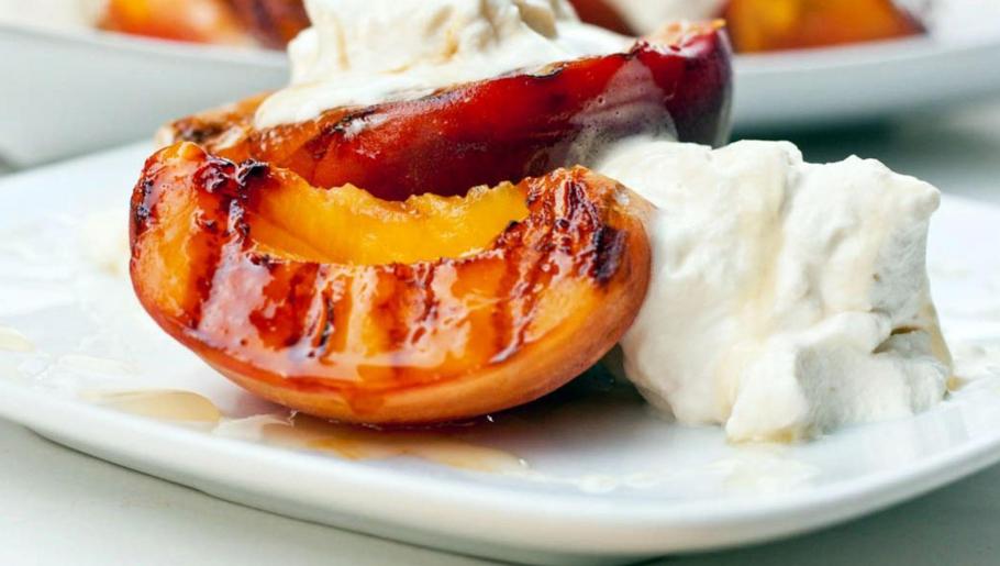 Pêches au miel grillées et crème chantilly maison