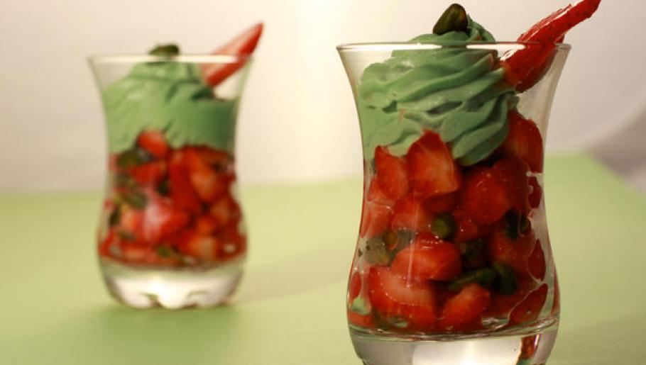 Tartare de fraises à la crème de pistache
